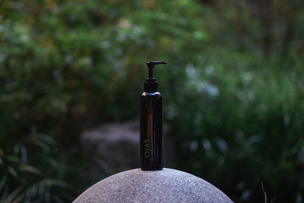 肌なじみの良いセサミオイル(ゴマ油)とライスブランオイル(コメヌカ油)のベースオイルにアーユルヴェーダドーシャ別にアロマブレンドオイルを配合したボディーマッサージオイル。VAヴァータタイプはラバンディン、ベンゾイン、ホーウッド、パチュリ、ブラックペッパーをブレンド