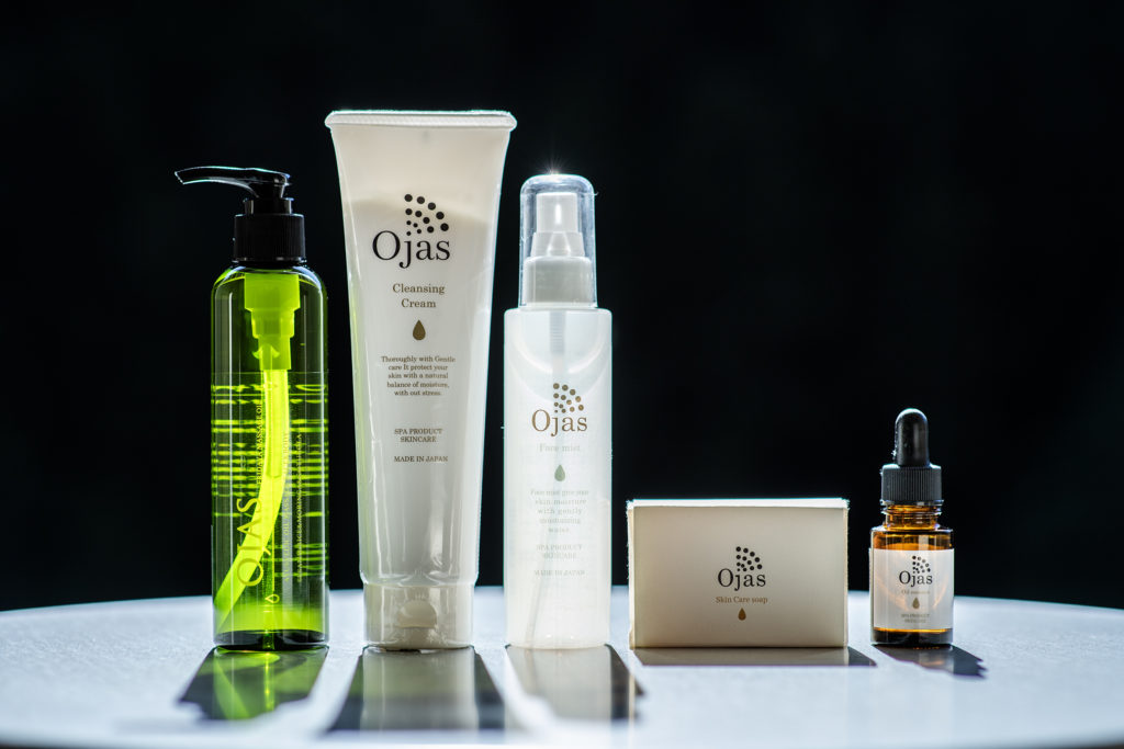 施術行程:Ojasクレンジングクリーム塗布→乳化→押し拭き→流水で流す→フェイシャルマッサージ(表情筋)→耳、デコルテ、肩、頭全体オイルマッサージ→整肌